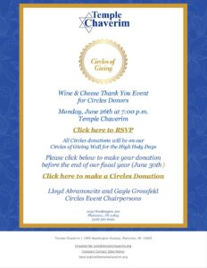 Circles Wine Cheese Event Monday June 26th at 700 p.m.